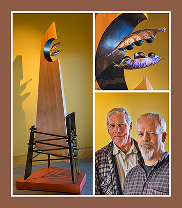 Recent headlines have been shouting, “Murder, torture, and terror!” Poverty, disrespect, insults, and social marginalization have too readily justified, in the minds of some, nightmares such as last week’s shooting of 12 cartoonists and staff at Paris’s Charlie Hebdo, and Boko Haram’s strapping of explosives to an innocent 10-year-old girl “suicide bomber” in Nigeria. There has to be a better alternative, a more excellent way, than to sink into such darkness of resentment, intolerance, and revenge in response to perceived failures of nations and societies to practice “Liberté, Égalité, Fraternité” and “liberty and justice for all.” And in fact, there is a more excellent way. Two Cochrane-area artists have just completed a sculpture for charitable purposes, over a year in development, that points to just such an uplifting alternative. In Spirit Rising, a 2.5m (8 ft.) tall wood-and-metal obelisk, Mike Simpson and Glenn Lott have created a tribute to the hope-filled indomitability of the human spirit. And far from descending into the depths of depravity, the Douglas fir obelisk is drawn longingly upward from its imprisonment within a black hand-wrought iron cage, attracted by principles more glorious, expressed through a rising pod of magnets responding to the beckoning pod of magnets above. As Mike explains it, Spirit Rising symbolizes the “hope and the enduring capacity of humans to rise beyond barriers.” It “soars beyond its confinements and culminates in a kinetic sculpture representative of rebirth and renewal.” Mike and Glenn see in their work an expression of Gandhi’s great wisdom: “Be the change that you wish to see in the world.” They see Spirit Rising as a call to change the world toward responsible freedom – “freedom” as defined by the 31st President of the United States, Herbert Hoover, who said: “Freedom is the open window through which pours the sunlight of the human spirit and human dignity.” In my own encounter with Spirit Rising, I’m inspired by Mike and Glenn’s power of imagination and creativity to give expression to the sunlight of love, respect, forgiveness and the will to rally arm-in-arm with those of differing opinions for the sake of our common dignity and humanity. Je suis “Spirit Rising”!