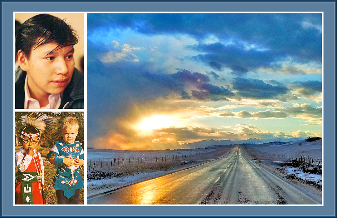 Two weeks ago I ran a joyous column in which I mentioned how the late Stoney Nakoda Elder Jacob House had adopted me into his family. Because of that honour, I became a brother to Dale House and an uncle to Dale’s son, Malcolm Hunter. This week’s column is on a more somber note. Last week, while Dale and Malcolm were travelling through Utah on their way to the Indian National Finals Rodeo in Las Vegas, their van was struck from behind by a semitrailer. Both died at the scene. Dale (70) was a revered Elder and pipe carrier among the Stoney people. (The pipe is associated with traditional sacred ceremonies which Dale often opened in prayer.) Malcolm (47) was a respected traditional drummer/singer. He was born a month after our son James was born while both our families lived at Big Horn, the Stoney community north of Morley. (See accompanying photo I took around 1969–70 of Malcolm, wearing a porcupine roach and standing next to James, wearing a blue dancing outfit made by Malcolm’s mother, Virginia Hunter.) I have a special memory of my time with Dale from back in the late 1960s (see photo). He took me hunting one afternoon near Big Horn. An experienced hunting guide, he saddled up a pair of horses and together we crossed through the North Saskatchewan River to a high hill on the south side. There he showed me how to bring home a deer for dinner. After we dressed it and headed back, it was getting toward sunset. The beauty of that moment was surpassed only by the importance of a lesson Dale taught me. Before we arrived at the corral, Dale had us leave some of the meat with one of the Elders. At the heart of the Stoney Way, Dale said, was the value of sharing life’s blessings. A few days after Dale and Malcolm’s deaths, I came across an inspiring photo on Facebook by their cousin, Kyle M. Fox, of Morley. It spoke to me about hope, so I asked Kyle if I could share it with you. “I took this right after the sad news while I was driving back from Cochrane,” he replied. “It felt very spiritual. It seemed like a sign Dale and Malcolm had made it home to the Creator. I felt a peace inside me and that their journey in this life was peacefully completed. I’m glad you will use my photo to honour Brother Malcolm and Grandpa Dale.”